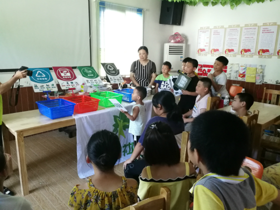 为响应绿色环保生活,合理垃圾分类的要求,7月25日,交通学院湘水支教团英雄岭分队开展了以“垃圾分类勤学习,绿色环保享生活”为主题的环保课程。