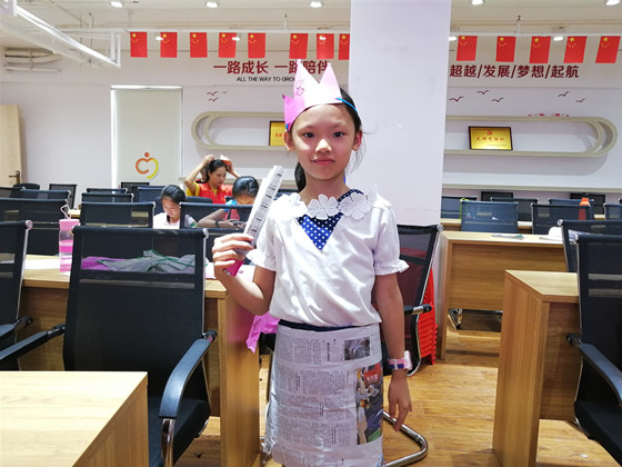 上午,志愿者胡樱瑞给孩子们带来绿色环保服装设计课。在孩子们的手里,一张张彩色卡纸变成了款式多样的帽子,一份份废弃的旧报纸变成了美丽的小裙子,一个个废弃的塑料瓶变成了精致的小饰品。孩子们也在设计过程中,懂得了环保就是从身边小事做起的道理。