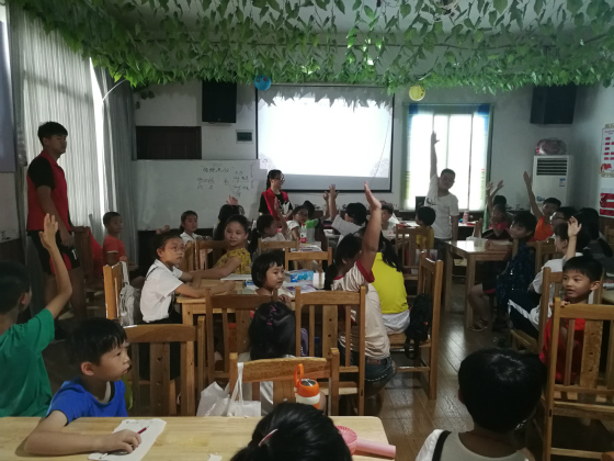 7月19日, 交通学院湘水支教团在“雷锋号”青少年关爱家园英雄岭站点开展第四天的教学工作。