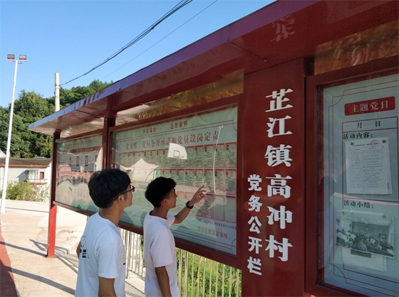 下午,在交通局韩主任的带领下,实践团分别走访了高冲村和小鱼口村。实践成员观察到乡道由沥青路与水泥路构成,并在多处设有防护栏,同时整段路设有交通标志以及限高架,通有班车。芷江县多为红黏土,雨水冲刷容易滑坡,因前几日雨水较多,损坏较为严重,多处都在修补中。据了解,因资金的问题,道路只能在原基础上进行翻修,早期道路路线也是由交通局的工作人员代替设计院进行设计。随后,通过采访高冲村党委书记江竹秀,实践团得知村里修建道路的经费是政府出资与村民集资共同组成,当时有一名老党员出钱为许多拿不出钱集资的村民垫付。江竹秀表示:“当地主要种植柑橘、玉米和水稻,每家每户都有自己的地,因道路的改善,运输成本降低,近几年收益较为可观。”此外,考虑到班车成本和村民的出行状况,高冲村每周五会有班车进村,村里小孩上学每天有校车接送。走访期间了解到,现高冲村有46名党员,他们扎根在基层,是切切实实的在为当地党员谋实事,充分发挥了先锋模范作用。