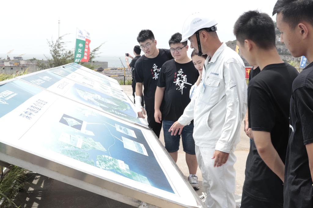 7月10日,中交四航局深中通道项目部牛头岛,项目副总工嵇廷带领交通学院“深中通道”实践团参观学习超级工程-深中通道。