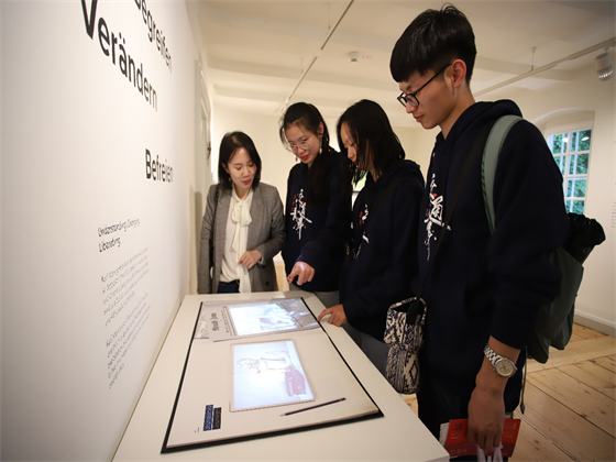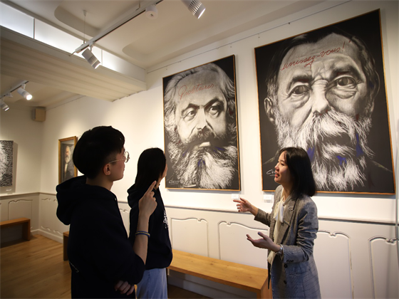 在特里尔实践团沿青年马克思成长足迹,追寻马克思追求真理的故事,在马克思故居博物馆、来自中国的马克思雕像等地,通过视频拍摄的形式,开展了以“交通青年对话马克思”为主题的微课堂,从马克思和燕妮的相知相守、马克思和恩格斯的革命情谊、青年马克思求学经历等角度,讲述了青年马克思的故事,向青年学生传递了学习马克思不畏艰难、勇于奋斗的精神力量。同时团队还在特里尔开展中国特色文化宣传,来自中国的剪纸、风筝、刺绣展品在海外友人的喜爱。