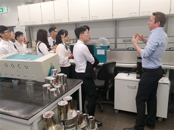 在道路研究所的访学期间,研究所副所长、道路工程方向负责人、材料测试实验室主任 Christian Schulze博士向研学团介绍道路研究所承担的科研项目。亚琛工大道路所的科研项目涵盖交通交流设计、新型路面材料及路面结构研发、轮胎-道路耦合数值模拟等方面。随后,研学团一行参观道路研究所实验室,实验室涵盖土木和交通领域的各类实验设施,包括新型动态剪切流变试验仪、Wehner-Schulze 磨耗仪、道路所自行研制的亚琛磨光机、亚琛压实仪和汽车仿真模拟驾驶室,大比例隧道模型以及道路所的试验路段等。在亚琛工业大学访学期间,研学团还同正在亚琛工大攻读博士学位的交通学院2014届校友张泽宇及三位亚琛工大的学生举办了座谈会。亚琛工业大学道路所的博士生Chonghui Wang、 Quan Liu 分别作了题为“基于离散元方法进行沥青路面摊铺技术的模拟”和“可再生沥青混合料的均匀性”的报告。 亚琛工业大学土木工程学院本科生Valentin向研学团成员分享他在亚琛工业大学的学习和生活。2018级道路与铁道工程专业的研究生刘帅同学感触颇深:“在研究所,我看到了德国独具特色的道路设计理念和实验室管理模式,让我更为清晰的认识自己所处环境的优势和不足,日后要加强专业学习,立志成为一名卓越的道路工程师,积极加入一代一路的建设中,为祖国的发展奉献自己的一份力量。”