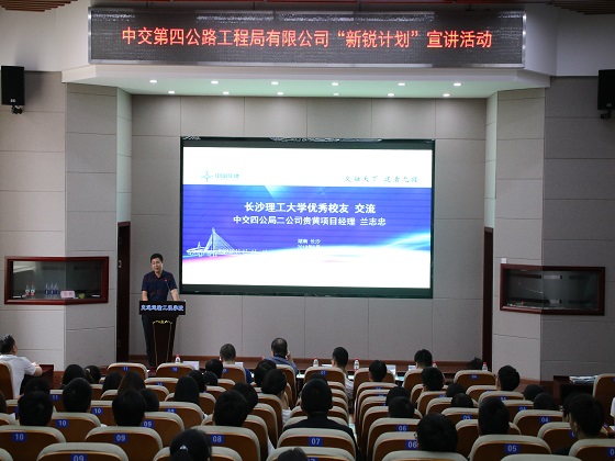 随后张小军带同学们走进中交四公局,介绍企业的文化、精品工程、获得的荣誉、薪酬待遇以及人才培养模式等,对“新锐”联培班招聘的专业、学历、成绩等相关要求进行了详细的说明。在之后的提问环节中,他对学生们提出的问题进行一一解答,并加以拓展作出相应补充。宣讲会结束后,80余名学生递交简历参与了“新锐”联培班的招聘面试。