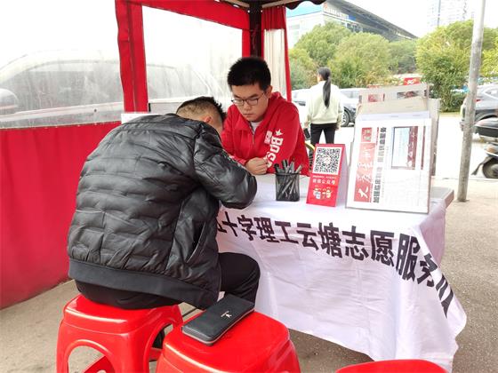 11月16日,交通学院分团委青志协献血车志愿团于红星大市场开展志愿服务活动,志愿者武一萌、陈汶祥、沈鑫薇和汪玉参与其中。