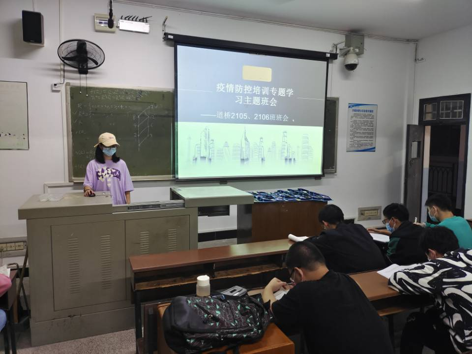 为进一步提升学生对疫情防控重要性的认识,强化学生自我管理责任意识,交通运输工程学院院属各班级于4月20日—4月22日开展疫情防控培训专题学习与主题班会。