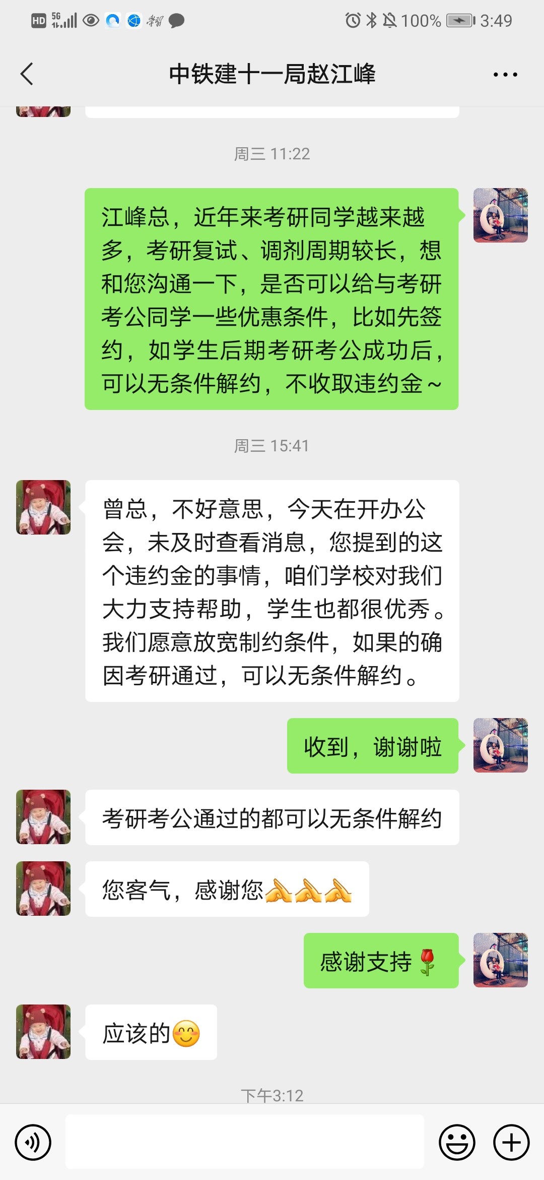 图3 与企业达成“绿色就业通道”协议 图4 考研复试“帮帮团”答疑