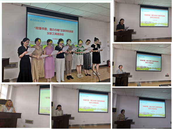 活动中,各系室分别进行阅读分享,女职工们饱含深情的朗诵了自己喜爱的诗词和书籍精彩片段。行政办公室分享了中国当代著名诗人阿紫的作品《翻阅阳光》,透过分享人的诵读,仿佛置身于明媚的阳光下,日子充满着温暖,充满希望。道路工程系分享了一本寓意深刻的书籍《做事的资本》,告诉我们人生中,无论做什么事都要抱着一种求真的态度。我们往往追求代表真实的任何事物,因为它代表着最崇高的美德——诚实与正直。交通运输系分享了董竹君女士97岁高龄写下自传《我的一个世纪》,“我不向无理取闹低头,对人生坎坷没有怨言。能力决定一个人能做什么,格局决定一个人能走多远。”董女士的一生身处逆境却自立自强,如灿烂的烟花照亮夜空,成为我们无数女性学习的典范。还有《初心》、《美丽中国》、《信念追随》等精彩段落的分享,使得现场聆听者受益匪浅。活动最后,由巾帼团队金娇等人集体朗诵林徽因的作品《你是人间四月天》,诗词宛如一阵清新的风,温暖而纯净,绵软而轻柔,极富女性的细腻与深情,让人从心底感受到一种愉快和舒适。