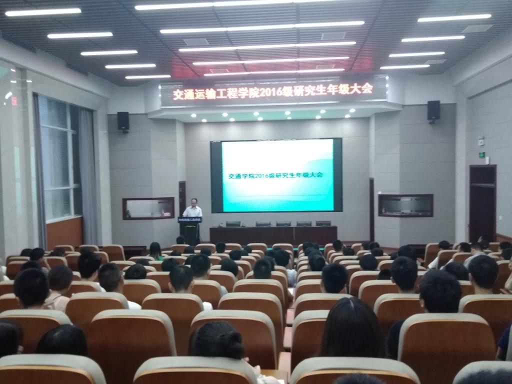 6月20日晚,交通学院在工科二号楼交通科技报告厅召开2016级研究生年级,学院高英力副院长、研究生辅导员陶传谱及2016级全体研究生参会。