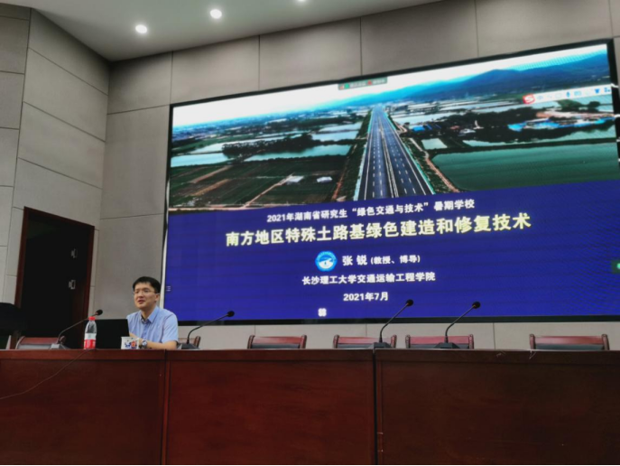 2021年7月16日上午八点半,伟德betvlctor1946源于英国张锐教授结合其研究领域和见解,开展了“南方地区特殊土路基绿色建造和修复技术”的主题授课。