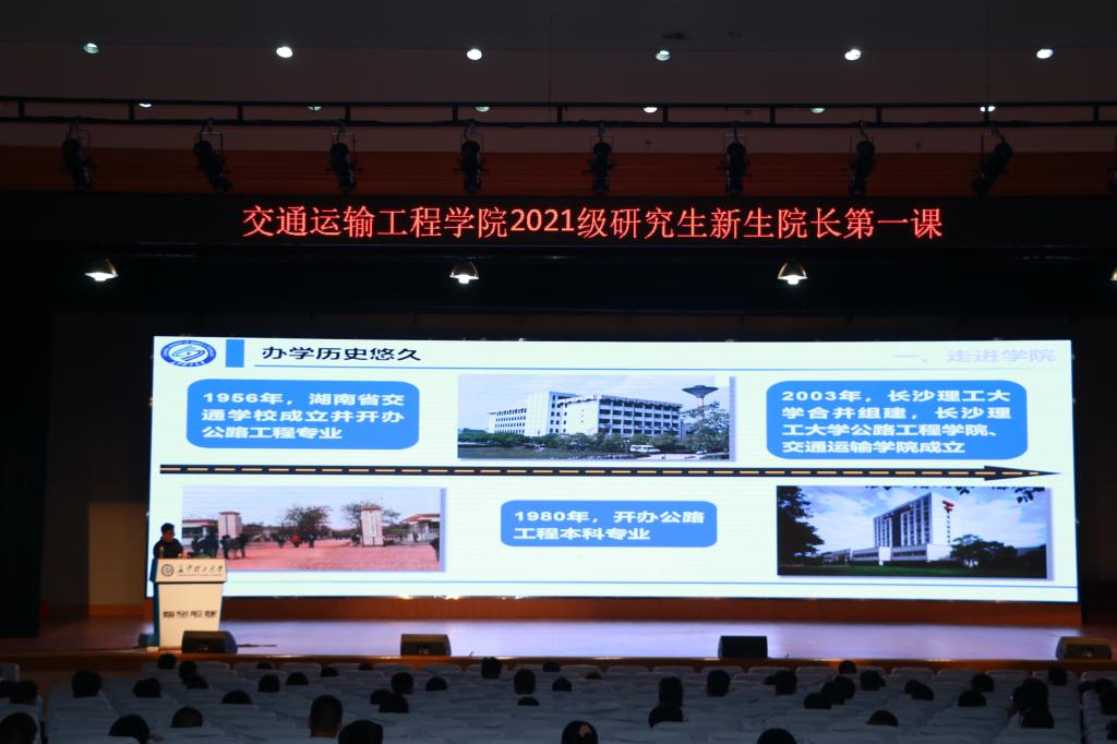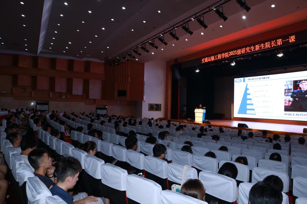 9月9号晚上,交通学院在金盆岭校区五教大礼堂开讲院长第一课。交通学院院长张军辉主讲,全体2021级研究生新生参加。