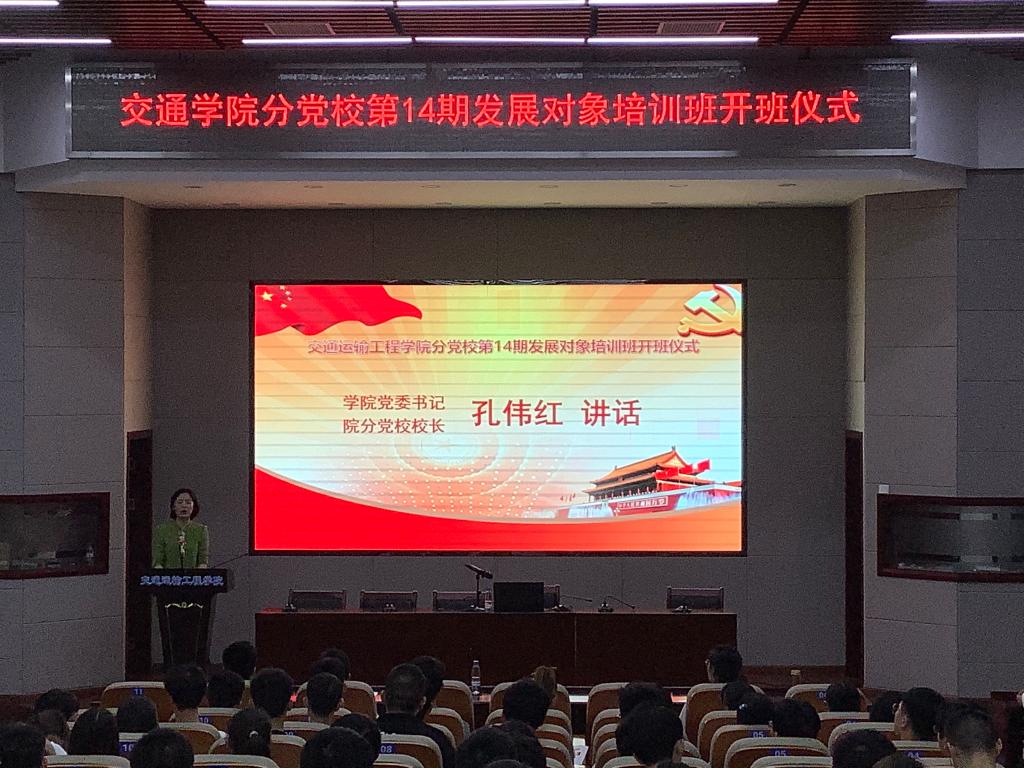 5月10日晚,交通学院分党校于工二交通科技报告厅举行第十四期发展对象培训班开班仪式。学院党委书记、分党校校长孔伟红,学生党总支副书记、分党校秘书肖敏强与会,第十四期发展对象培训班全体学员参加。