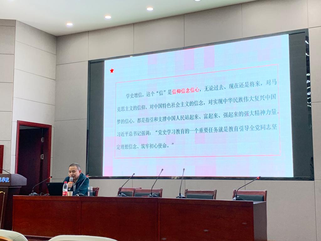 4月20日下午,交通学院党史学习教育理论宣讲专题报告会在工科二号楼交通科技报告厅举行。会议由学院党委书记孔伟红主持,马克思主义学院教授余乃忠主讲,学生党员代表参加。