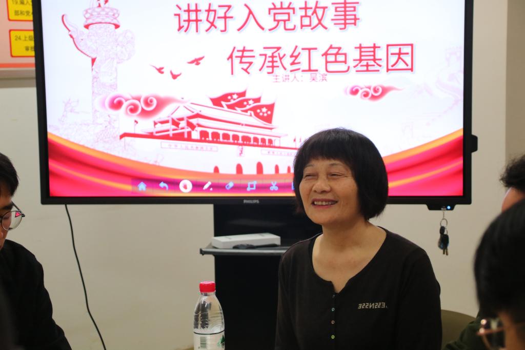 会上,吴滨讲到:“我这一生只做了三件事,跟党走、教书、育人”,并从这三方面出发,结合自己从教几十年来的亲身经历,将自己的入党故事和心路历程娓娓道来。她表示,几十年来,国家、社会和学校都发生了翻天覆地的变化,在这些变化中越来越感受到国家的强大。她提出,青年学生要坚定不移地拥护党的路线、方针、政策,紧跟党的步伐,吃苦耐劳,承担起建设祖国的重任。