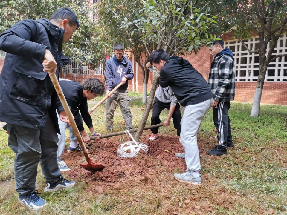 “大家搬运树木时注意不要损坏枝叶,轻拿轻放”“栽种的洞口要对应树木根部的尺寸,使用锄头和铁锹要注意安全,不要误伤到自己”......3月12日,是我国的植树节。为切实增强校园环境综合治理,着力推进绿化美化净化工作,全面提升师生环保意识、生态意识,一场生动的“植绿护绿”劳动体验课堂在行健轩3栋园区顺利举行。