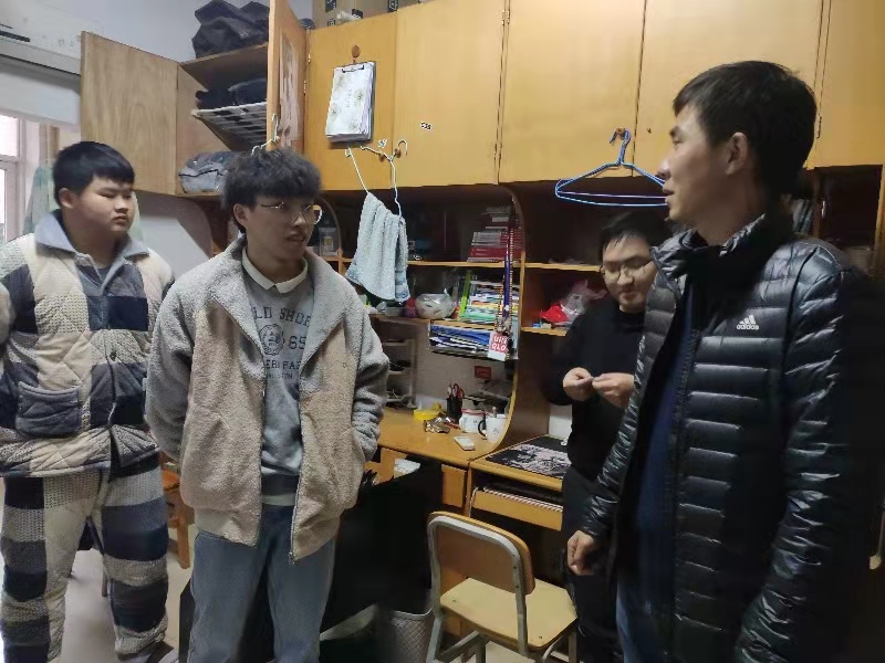 老师们与各位寝室成员进行交流,仔细查看了学生寝室的内务卫生情况,督促学生按照文明寝室标准进行整改,还向同学们详细介绍了疫情期间学校的相关管理制度,强调在校学习生活期间,注意做好自我防护措施,养成良好的生活习惯,鼓励大家要加强体育锻炼,增强体质,在新的学期努力学习专业知识,熟练掌握专业技能,扩展自身的兴趣爱好,实现德智体美劳全面发展。