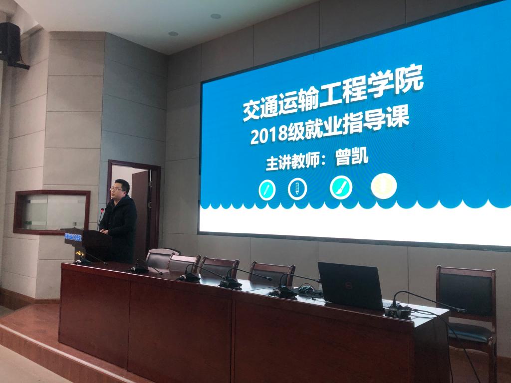 12月15日下午,交通学院于云塘校区工科二号楼交通科技报告厅组织2018级学生开展《大学生职业发展与就业指导》课程学习。本次课程由交通学院就业指导中心主任曾凯授课,交通学院2018级全体学生参加课程学习