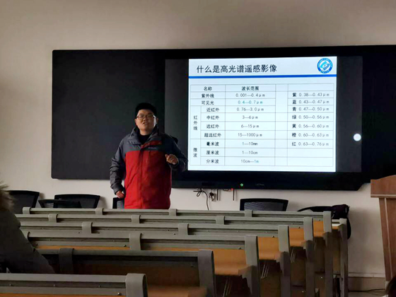 岳俊凭借自己的经验和阅历,将高光谱遥感讲解得十分透彻,首先介绍了高光谱遥感的概念、前沿分类方法和应用前景,其次讲述了如何在基于人工智能的高光谱遥感影像分类前沿领域进行相关研究,拓展了同学们的知识面。讲座结束后,同学们纷纷举手提问,岳俊针对每一位同学的问题做出详细解答。讲座在同学们的热烈掌声中结束,同学们表示在此次讲座中收获颇丰。