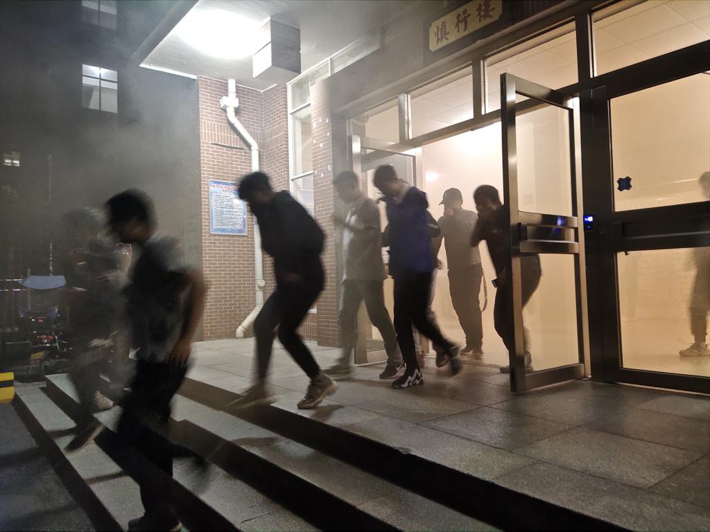 为切实加强校园消防安全建设,全面提高在校学生消防安全意识和自防自救能力,做好秋冬季防火工作,消除学生公寓火灾隐患,营造浓厚的校园消防安全氛围,11月9日晚,交通学院组织学生在行健轩三栋宿舍楼进行消防安全演练。