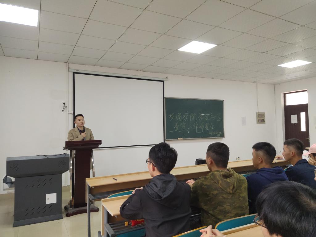 为进一步加强学生社区建设,提高学生文明守纪意识,11月4日中午,交通学院于工科二号楼B-311室召开学生社区查寝工作布置会,会议由学生自管会会长彭龙主持,学院党委副书记王煜坤、学生党总支副书记肖敏强、学工办辅导员曹骁出席会议,全体入党积极分子、层长参加会议。