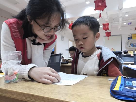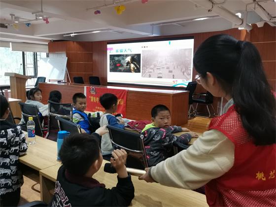 首先,志愿者曾惠倩展示演示文稿并播放短视频,详细讲解《八十天环游世界》相关内容。随后,志愿者尹浣青带来《两型环保之变废为宝》主题课堂。通过尹浣青的讲解,孩子们了解到各类环境污染问题。在观看有关环境污染与废品利用的视频之后,师生之间进行互动问答,孩子们由此加深了对两型环保的认识,并知道了保护环境的重要性和必要性。