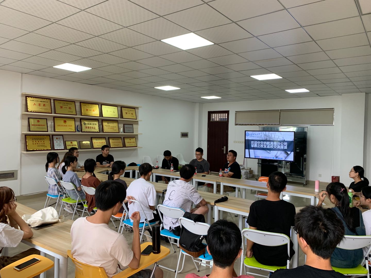 9月6日下午,交通学院于云塘校区工二B-417召开2019级职业生涯规划座谈会。此次座谈会邀请到中交四航局南沙公司校友邹鼎正分享职业故事。座谈会由19级辅导员彭笠主持, 19级各专业学生参与。
