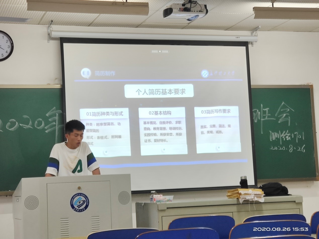 班会上,班主任首先就2019届、2020届就业情况进行了综合分析,表示虽然目前就业形势较为严峻,但学校和学院都竭尽全力为大家争取资源、拓展平台,尽可能满足毕业生就业需要,同时鼓励大家充分自信地去应对“后疫情”时期就业挑战。随后,班主任以实际案例为大家开展了简历制作指导,并介绍了云就业平台网签流程以及就业注意事项(防范就业诈骗)。在分享中,班主任强调,毕业班同学要尽早谋划、尽早准备,提前了解行业企业,及时调整就业心态,合理定位自身目标,在实现就业目标的同时,将个人理想融入我国交通强国建设事业当中,最终实现工程报国的伟大梦想。