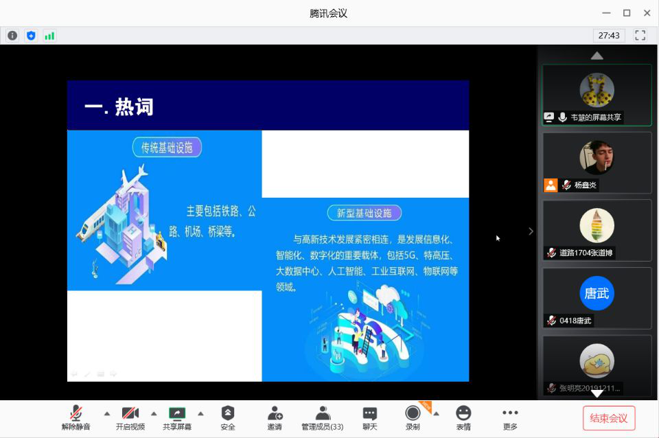 7月11日晚,道路1704班组织召开了线上学习交流活动。交流活动邀请了班主任韦慧老师和长安大学硕博连读学长张明亮参加。