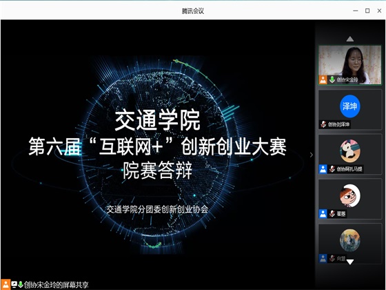 6月28日晚,交通学院举办第六届“互联网+”大学生创新创业大赛院赛。交通学院周爱莲老师、向慧老师和翟曌老师担任比赛的评委。本次比赛以线上答辩的方式进行,由院分团委创新创业协会宋金玲主持,共计10支队伍参与。