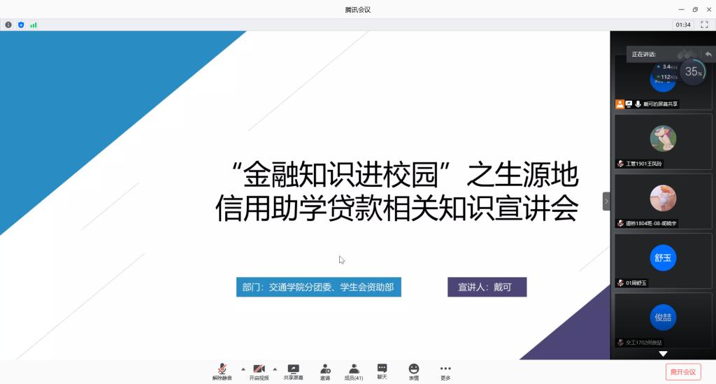 6月17日晚19:00,交通运输工程学院召开金融知识进校园暨国家生源地信用助学贷款还款宣讲会,会议由资助部戴可主持,资助部全体成员以及学院全体生源地信用助学贷款学生参与会议。