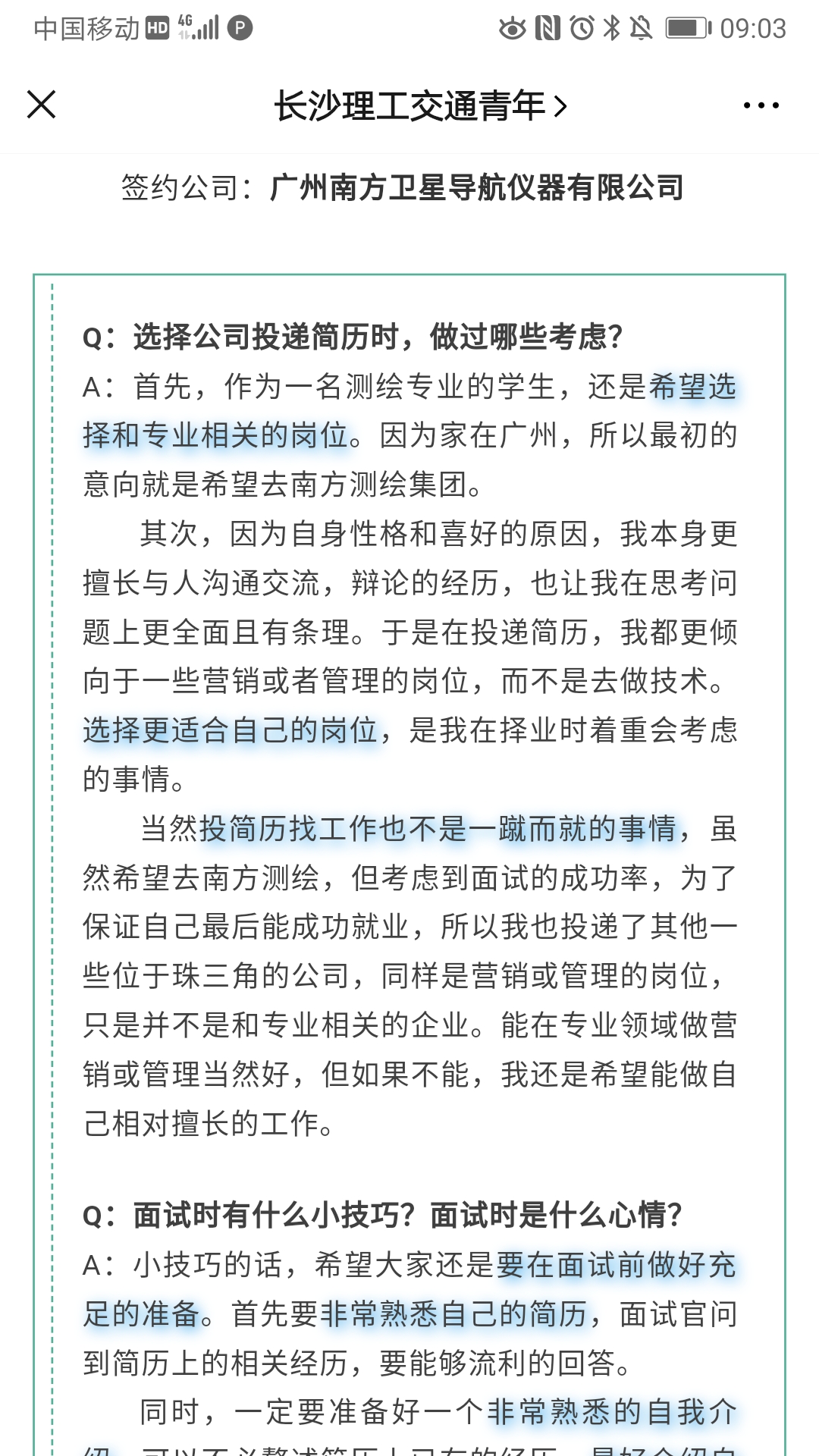 学长分享就业经验 就业“云答疑”