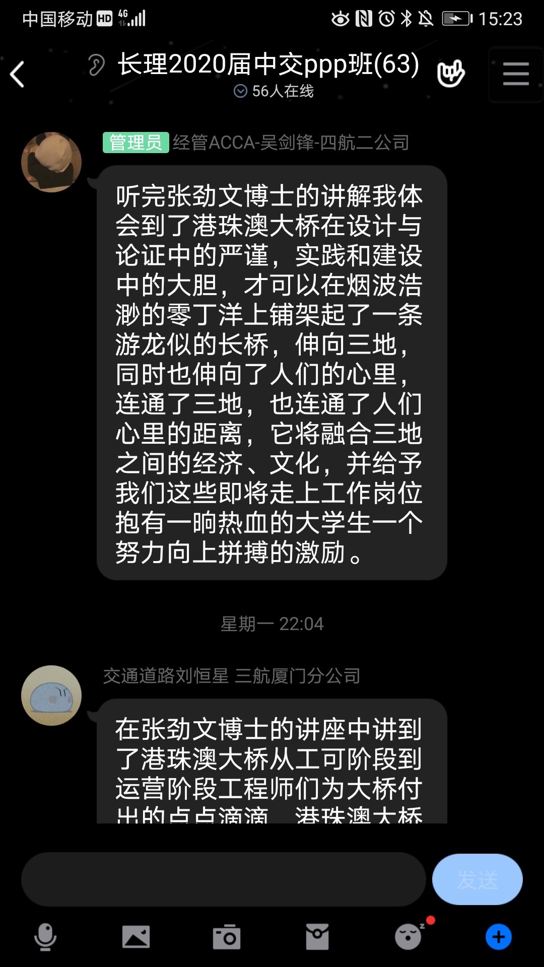 通过学习,学员们纷纷表示:之所以我们能够拥有如此伟大的超级工程诞生,那是因为有着党的坚强领导,有着万千工程人的齐心协力与默默付出。正如习总书记所说的那样,港珠澳大桥是一座圆梦桥、同心桥、自信桥、复兴桥。大桥建成通车,不仅进一步坚定了“四个自信”,更是充分昂扬了广大青年学子奋斗的激情。作为一名即将入职的工程人,亦将成为祖国建设大军中的一份子,我们愿倾尽自身所能,苦练本领,鼓足干劲,不断提升自己,为祖国的社会主义建设添砖加瓦。