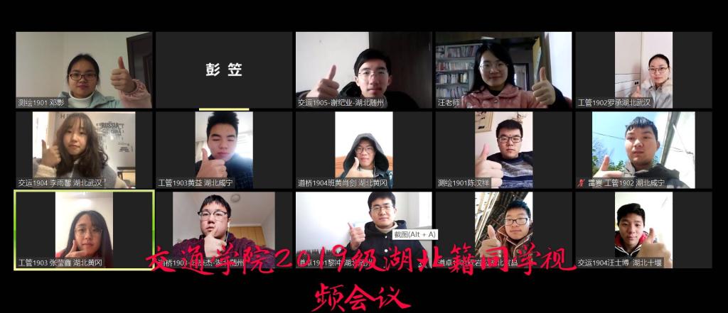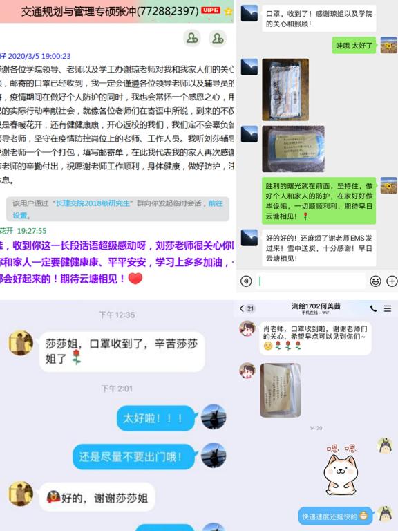 隔空传递爱,关心不断线。交通学院党委副书记王煜坤强调“学院学生工作始终以学生为本,此次疫情当中,我们重点加强湖北籍学生的思想引导、心理疏导和学习生活指导,切实帮助他们解决实际困难,引导他们在加强防护的同时,努力发挥“不抱怨、埋头干、敢担当、勇争先”的交通青年精神,以饱满的姿态坚持到这场战“疫”的最终胜利!”