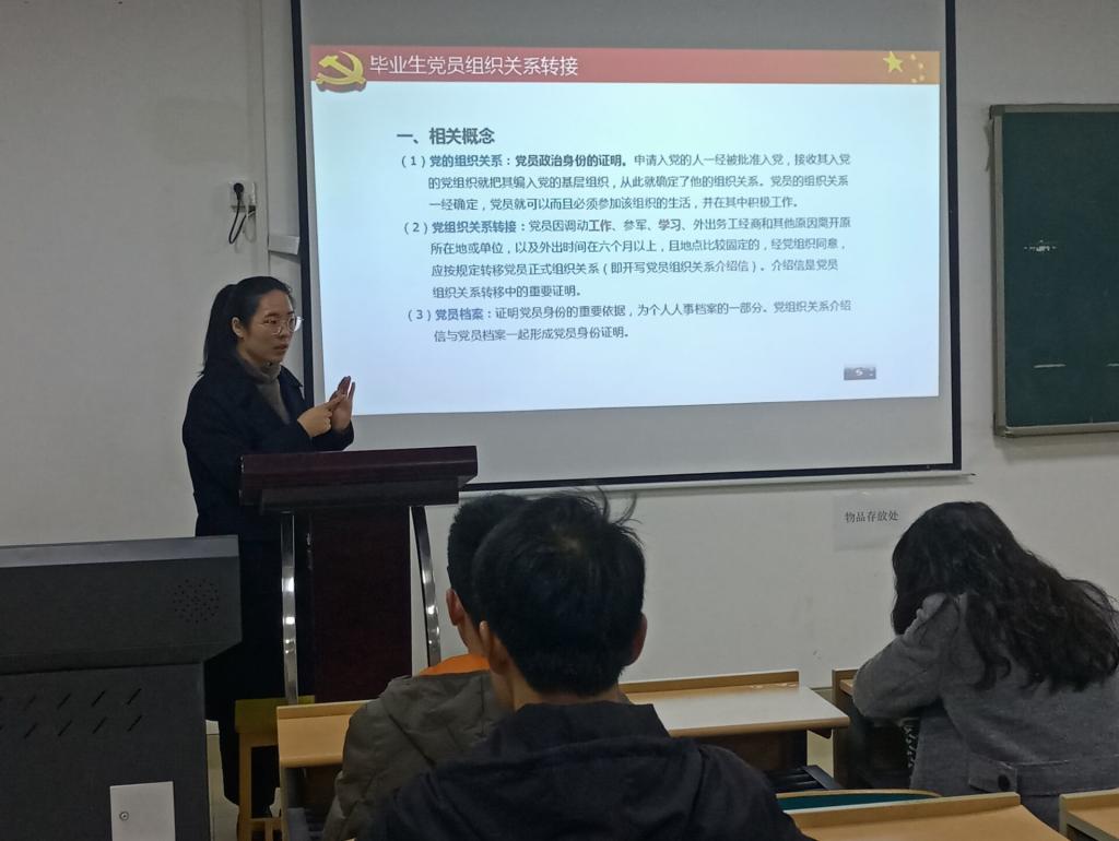 肖敏强针对党员毕业生重申了党员的责任和义务,强调党员的先进性和带头性,要求大家即使离开了学校还要明确自己的党员身份,时刻以一名党员的标准严格要求自己,遵循党纪党规,按照党章的要求及时将党组织关系转接到单位党组织或原籍基层党组织,按时参加党组织生活,及时缴纳党费。