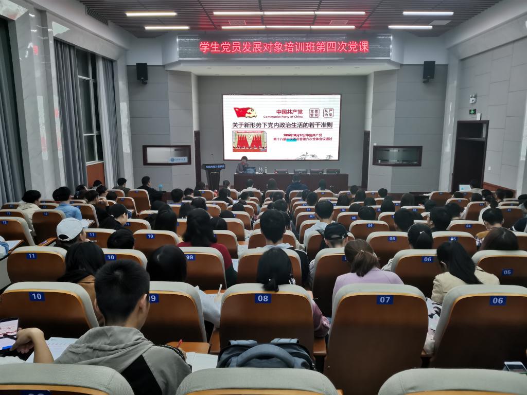11月6日晚,交通学院第十期发展对象培训班第四次党课培训在工二交通科技报告厅进行。文法学院党委书记孔伟红为本次培训授课,主题为《关于新形势下党内政治生活的若干准则》,第十期发展对象培训班全体学员参加。