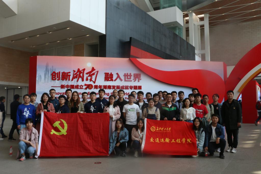 第二站,来到了湖南省博物馆新中国成立70周年湖南发展成就专题展。讲解员热情的向大家介绍到,湖南是新中国缔造者毛泽东主席的家乡,70年来,湖南人民艰苦奋斗,用自己的勤劳智慧改变湖南面貌,取得了令人自豪的辉煌成就。湖南在机械制造产业已经走在了世界的前列,中车集团,三一重工,中联重科,铁建重工已成为长沙亮眼的名片。湖南省的高速发展正是祖国复兴路上的缩影,复兴路上还需更多人才。在场的研究生党员纷纷表达了自己的对于未来的期待和建设祖国的热情。