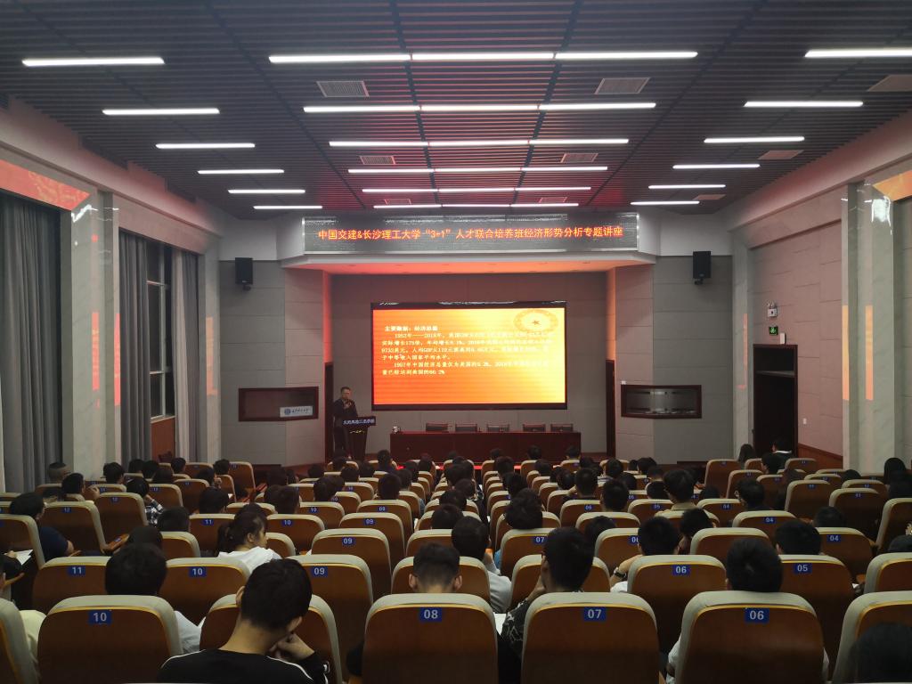 11月4日晚,交通学院组织中国交建&伟德betvlctor1946源于英国“3+1”人才联合培养班开展经济形势分析专题讲座。本次讲座由湖南省经济学会副理事长、中国产业经济学会理事、马克思主义学院教授刘解龙主讲,交通学院党委副书记田上、联培班班主任曾凯出席本次讲座。