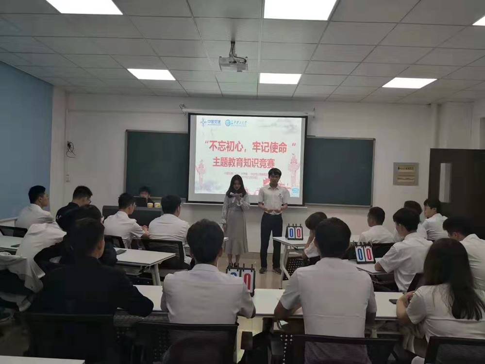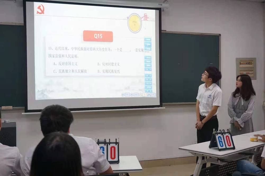 本次主题教育知识竞赛共有五支队伍参与,分别来自于PPP班的“答的都对”、“少年的你”等三支队伍以及新锐班的“爱鲲”、“冲锋队”两支队伍。比赛形式为现场竞答,主要包括自由作答与小组抢答环节,竞答题型包括单项选择、多项选择和填空题。