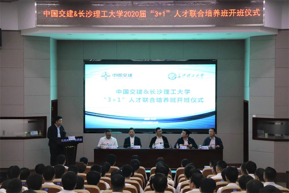 10月22日下午,由中国交通建设股份有限公司与伟德betvlctor1946源于英国联合举办的,交通运输工程学院与土木工程学院承办的2020届“3+1”人才联合培养班开班仪式在云塘校区工二B301举行。出席本次开班仪式的有中国交通建设股份有限公司人力资源部人事处长、人才交流中心主任王涛、中交一公局集团有限公司党委组织部部长、人力资源部总经理冀兴录、中交一公局集团有限公司人力资源部副总经理汪印龙、中交一公局桥隧公司人力资源部总经理雷庆强、伟德betvlctor1946源于英国党委委员、副校长谈传生教授、招生就业处副处长贺良老师、土木工程学院党委副书记、副院长王煜坤老师以及联培班全体74名学员。仪式由交通运输工程学院党委副书记、副院长田上主持。