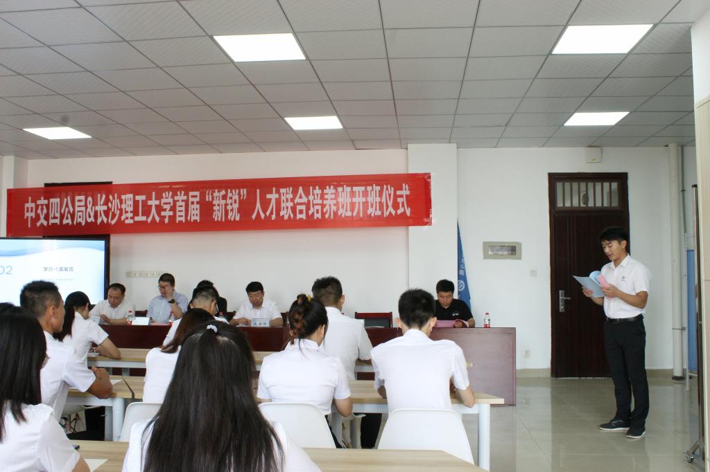 方文彬首先致欢迎辞,并指出“新锐班”的开办是加强产教融合、推进校企人才联合培养模式的进一步创新,学校将全力支持办好“新锐班”,努力为企业输送更多优质人才,并激励学员们珍惜机遇、求真务实、传承卓越、践行使命,用青春和汗水践行好“长理人”、“中交四公人”的使命,不断为“中国梦”、“交通梦”奋力拼搏。