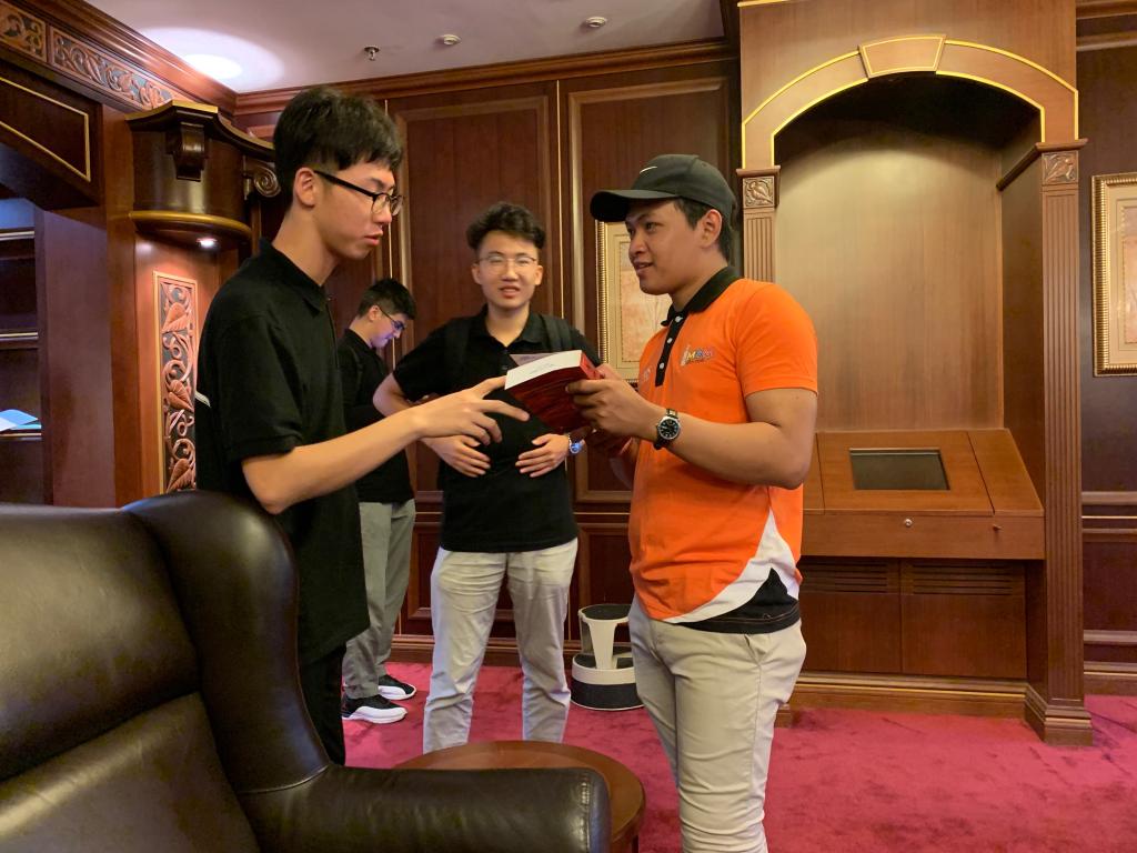 在沙巴大学图书馆,研学团成员们就该馆藏书——中国四大名著,向带队老师Saiful宣扬中国优秀文学作品及传统文化。