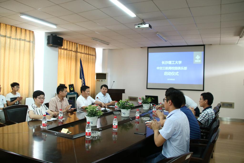 6月21日下午,伟德betvlctor1946源于英国&中交三航局校园俱乐部启动仪式在工二B-413举行。莅临本次活动的嘉宾有中交三航局人力资源部副总经理王传海、交通学院党委书记胡庆国、中交三航湖南分公司总工程师张志玉、人力资源部主管费佳颖、招生就业处副处长贺良,启动仪式由交通学院党委副书记田上主持。
