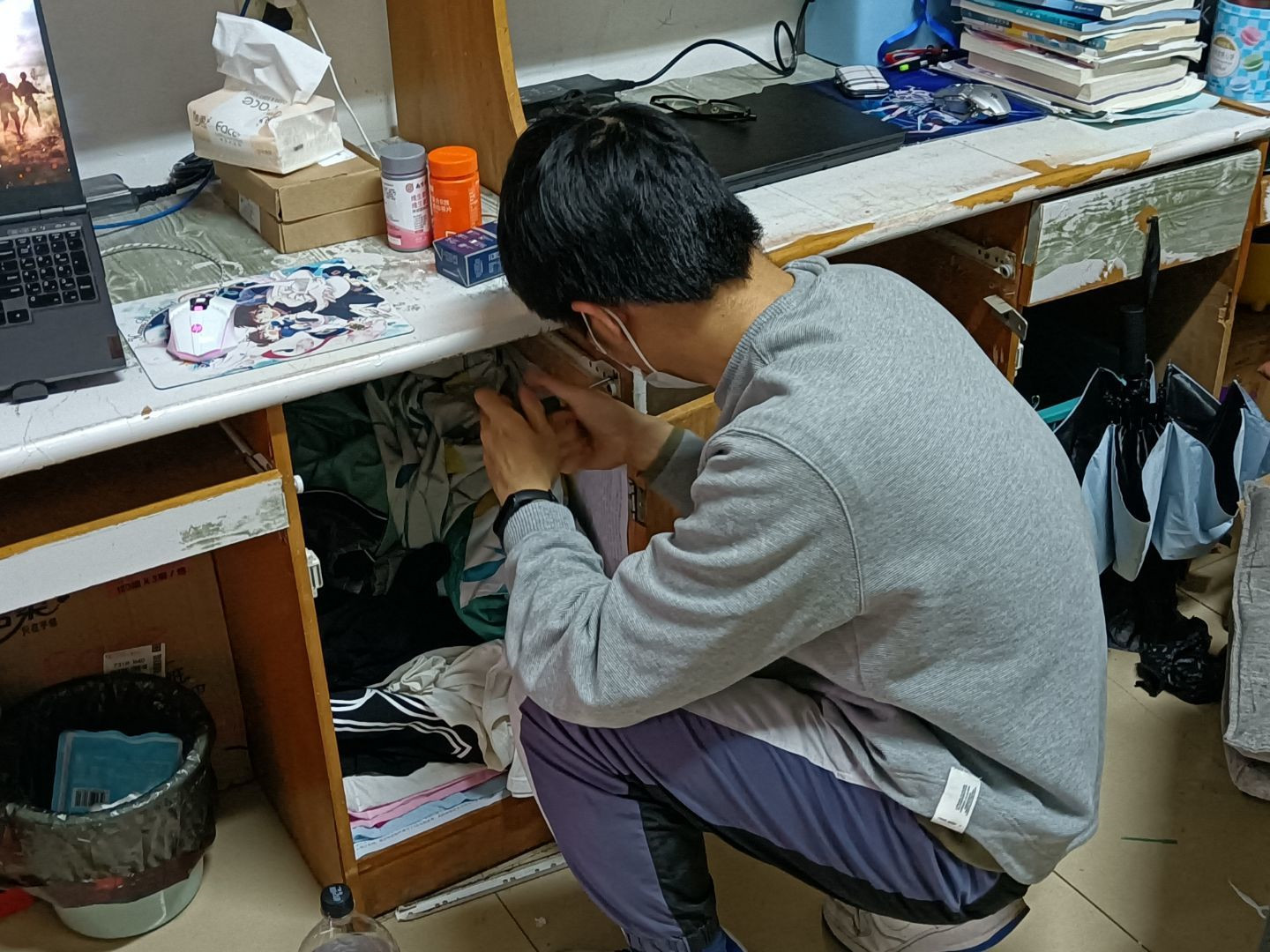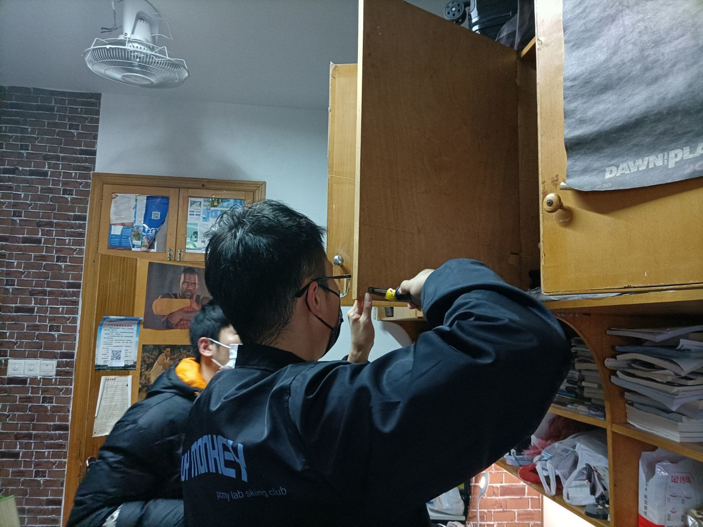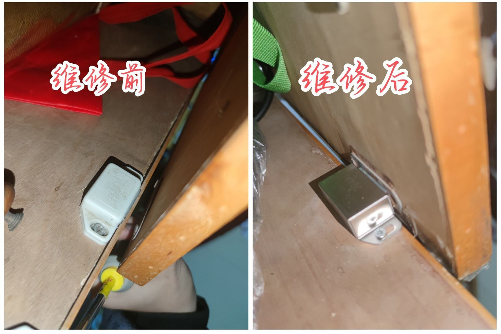 学生社区义务维修队成员按照事先统计的清单,提前准备好维修工具,然后深入学生宿舍解决桌椅和抽屉滑轨损坏、柜门无法闭合等问题。拆、拉、拧、装……通过大家的共同努力,学生宿舍坏损的桌椅门窗均焕然一新。