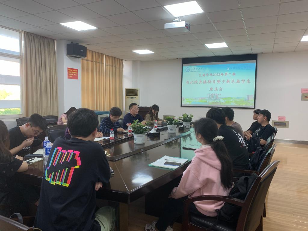 为了解学生对学院在教学工作、学生工作、行政管理工作等方面的意见建议,切实关注关心少数民族同学在校生活、学习上的相关情况,交通学院于5月3日下午开展了2022年第二期“书记院长接待日”暨少数民族学生座谈会。学院党委书记刘朝辉、院长张军辉、党委副书记涂道勇、学工办全体辅导员及32名学生代表参加了本次活动。