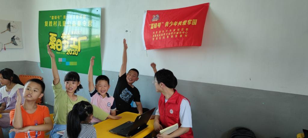 7月9日,交通学院“雷锋号”志愿团在望城区靖港镇复胜村站点开展第二天的支教。