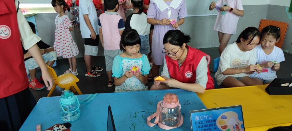 首先,志愿者们带领同学们制作环保手工作品与折纸作品,同学们积极参加,现场气氛活跃,通过此次课堂,增强了同学们的合作意识和动手能力。随后,志愿者们开展了“防溺水”知识讲座,通过知识讲解,播放动画,互动问答等方式,向同学们普及防溺水知识,增强了同学们的自我保护意识。最后,志愿者们向同学们讲述了疫情之下各行各业的人们共同抗击疫情的感人故事,介绍了中国在面对疫情时所做出的行动,勉励同学们在之后遇到困难的时候,团结一致,敢担大任。