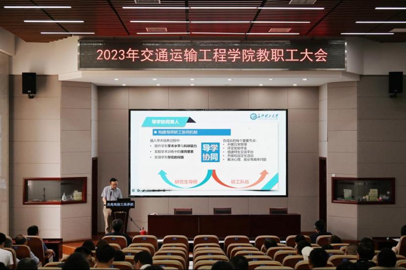 5月16日下午,交通学院在工二B301召开2023年导师“导学思政”能力提升培训会,本次培训会由学院党委书记刘朝辉主持,党委副书记涂道勇主讲,全体研究生导师参加培训。