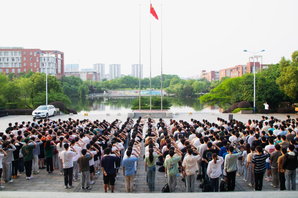 4月29日清晨,交通学院于云塘校区图书馆前坪举行升旗仪式,学院全体学工干部与2022级部分专业学生共计400余人参加。