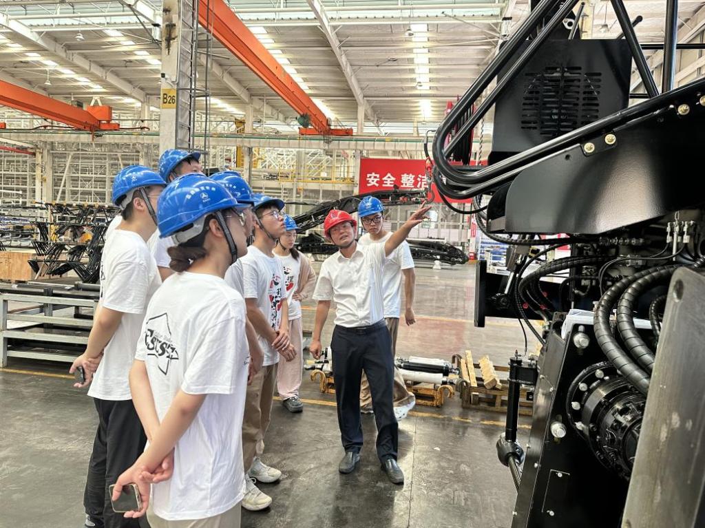 在三一工程师的专业引导下,实践团成员深入无人仓库、零部件铸造与整车装配车间、装备调试车间及成品展示区,亲眼见证了智慧化工厂的震撼场景。高度自动化的生产线、精密协同的工业机器人,让成员们深刻体会到智能制造的魅力。通过实地调研与互动交流,成员们不仅了解到筑路装备的最新技术进展,还深入探讨了绿色低碳转型、人机协同、无人驾驶等前沿议题,进一步拓宽了专业视野。