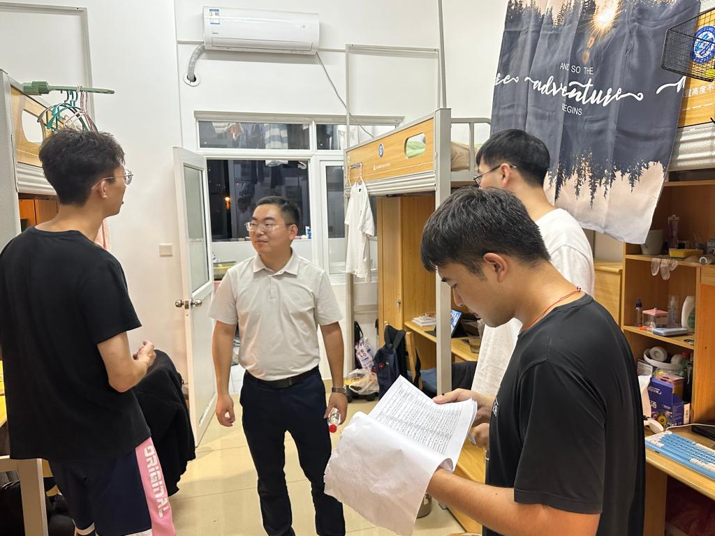 为确保学院全体师生能够在一个安全、和谐的环境中度过假期,交通运输工程学院持续落实学校关于加强安全管理的工作部署,于近日组织了一场全面而深入的安全走访检查工作。此次行动由学院辅导员周浩老师和李文博老师带队,旨在进一步排查安全隐患,提升师生的安全防范意识,为校园安全筑起一道坚实的防线。